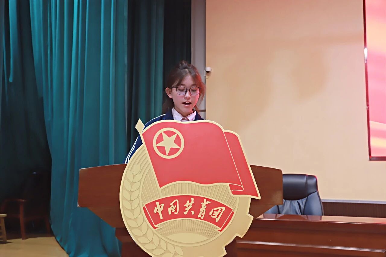 雄壮国歌响起,赤子之心随之澎湃,仪式在肃穆中拉开序幕。校党总支负责人宣读新团员名单,字字清晰,团章之责与青春之名就此交汇。佩戴团徽的时刻,那枚灼灼于胸的徽章,是荣光,亦是千钧之诺。